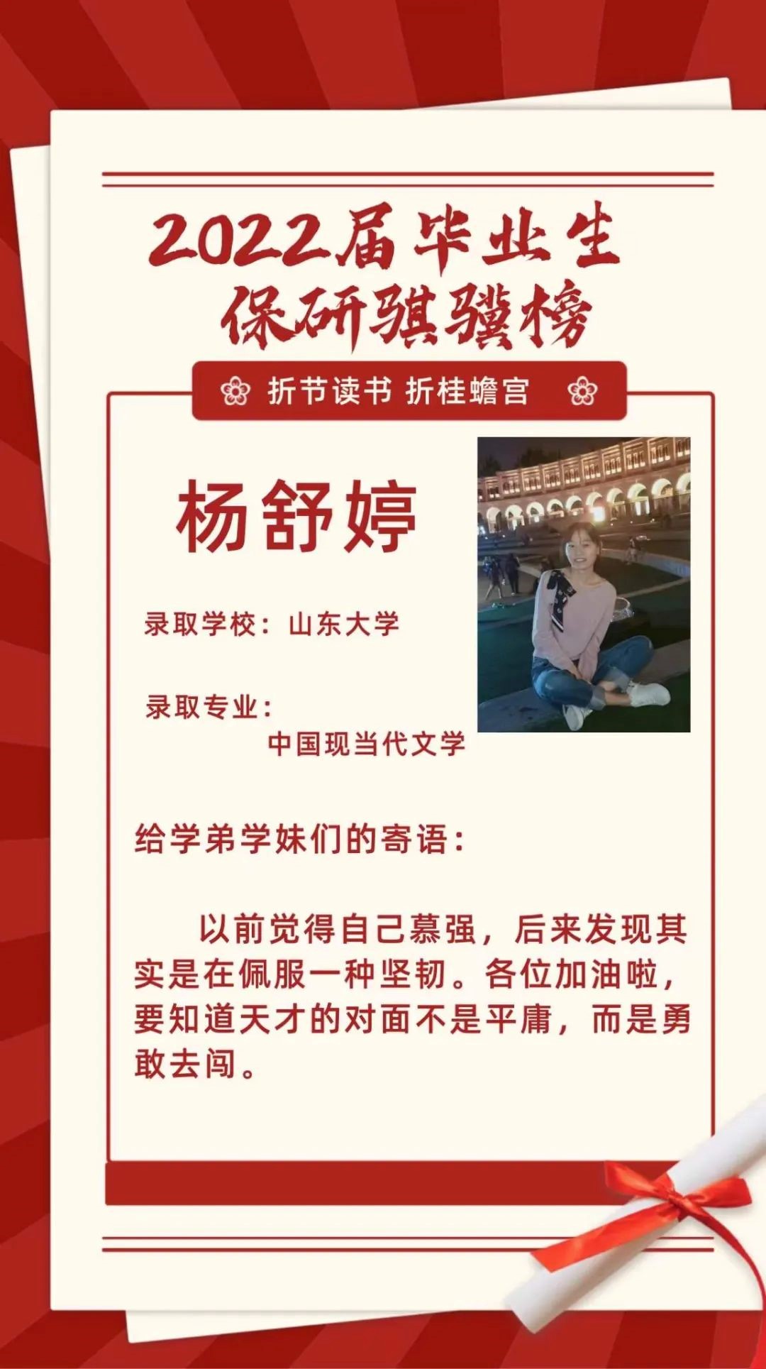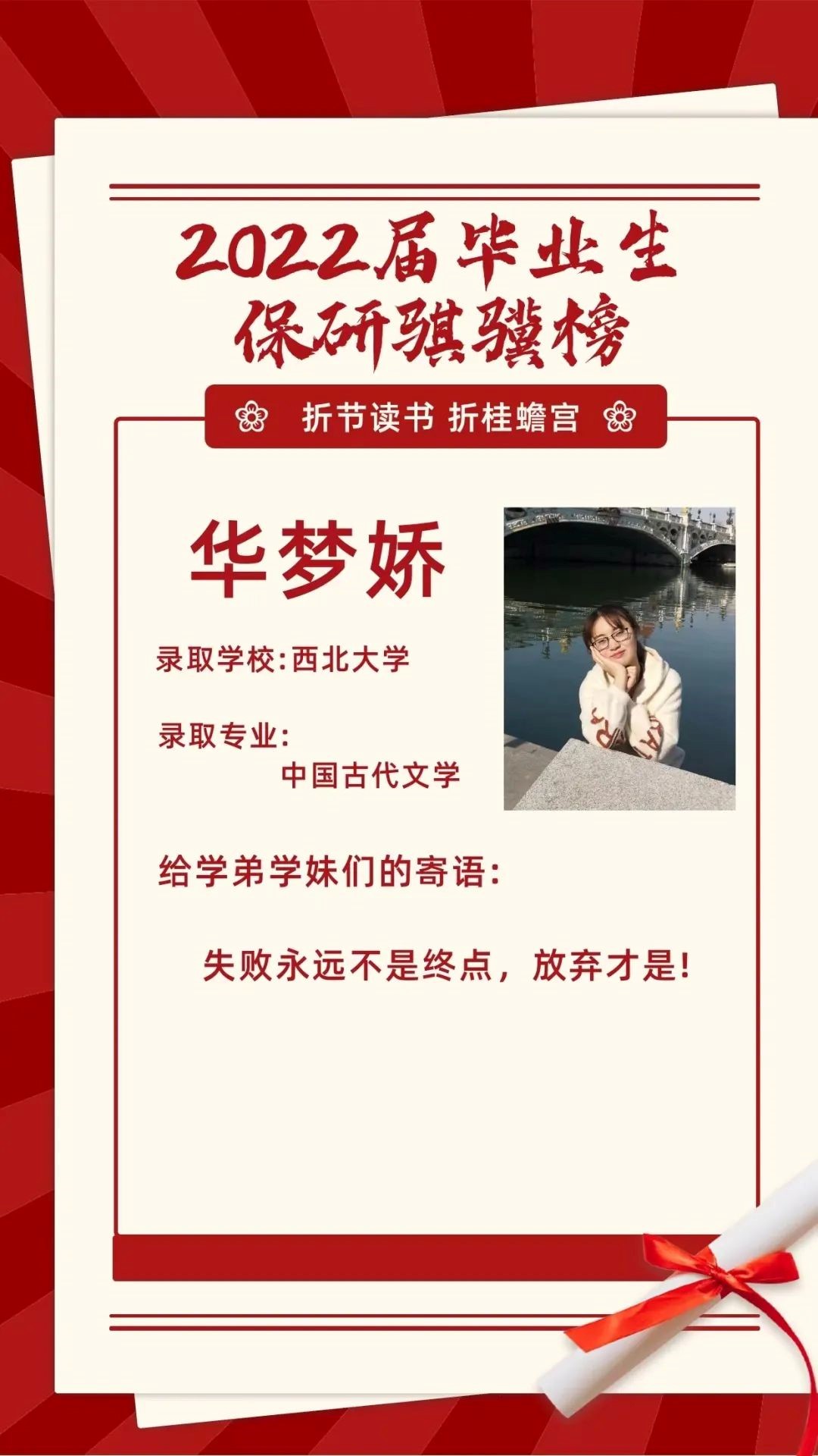 熬过籍籍无名,终有繁花着锦。有人风雨兼程用汗泪灌溉理想的种子,有人长风破浪赢得巴那斯山上摘下的桂冠,而期间是成百上千个夜晚的笔耕不辍、奋斗不息。大学时光,置身于人生中看似短促,但此几年究竟是“解道醒来无味”,还是“十年辛苦不寻常”,便要看是在春日暖阳中选择酣睡,还是在腊月严冬里选择伴梅苦读。让我们乘快风一阵,直探青云,走进2022届毕业生升学骐骥榜,借他山之石,琢己身之玉。