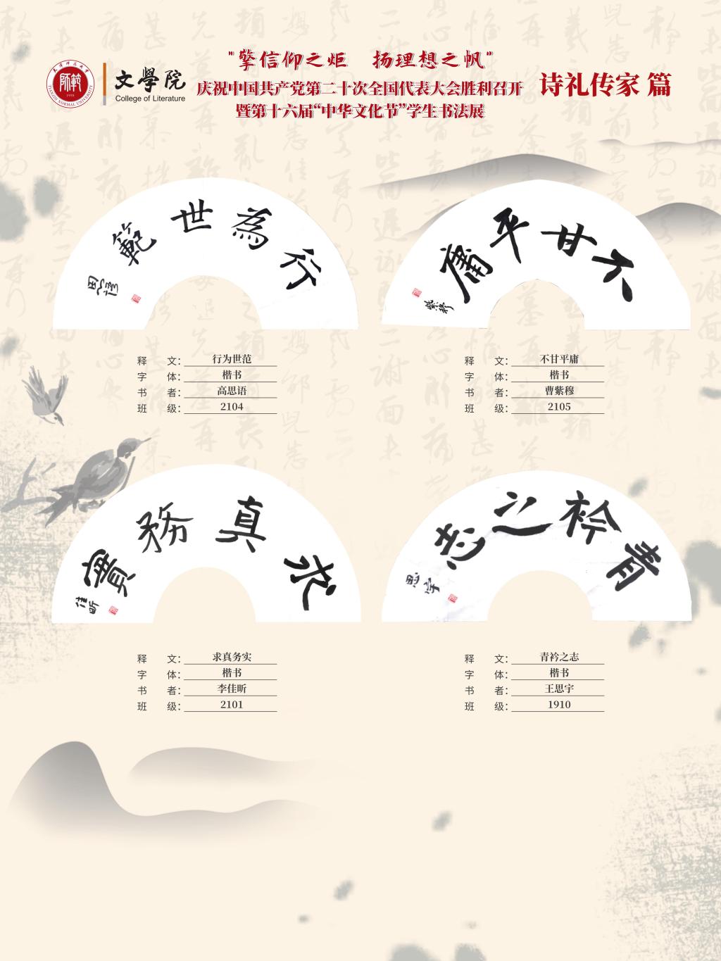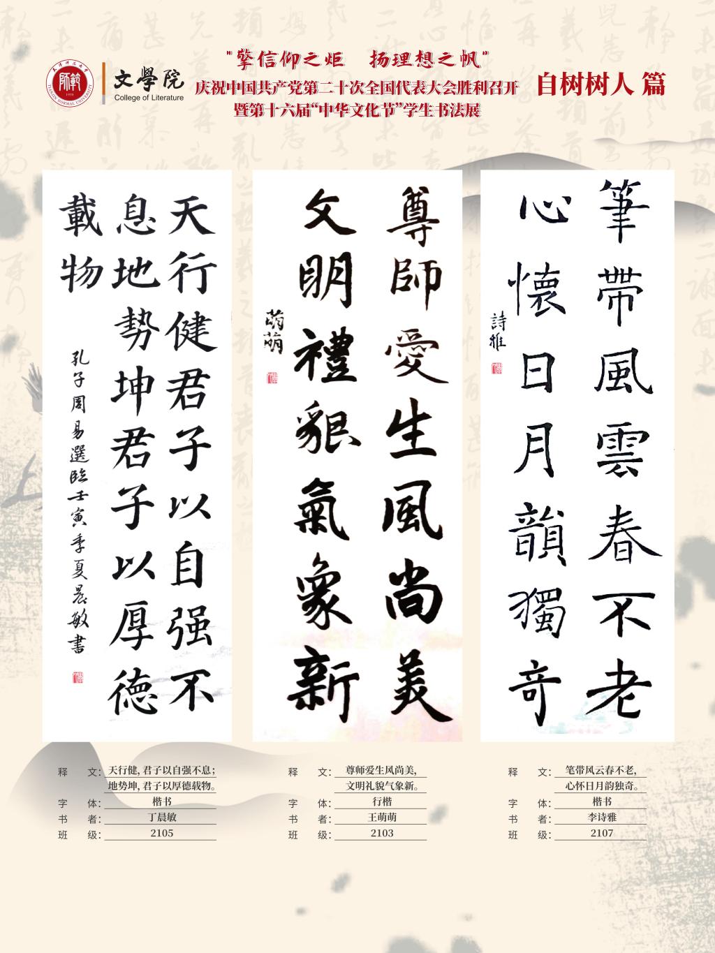 bw必威西汉姆联坚持落实立德树人根本任务,坚持立足专业发挥以文育人、以文化人特色,依托“书法理论与实践”等课程,将思想政治工作与课堂主渠道紧密融合,积极搭建传承弘扬中华优秀传统文化有效载体,全面构建全员全过程全方位育人格局。