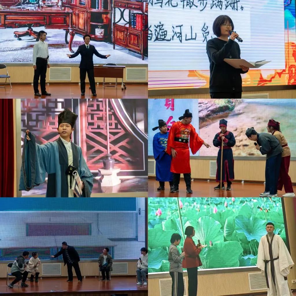 经过初赛选拔,共有来自我市6所高校的6支代表队晋级决赛比拼。在决赛的“律诗展示”环节,各代表队分别展示以指定素材创作的七言律诗,展现出选手们扎实的格律诗功底;随后进行的“经史论议”环节,各队选手要在作品中引用三条“四书”原文,并结合历史人物或历史事件,引经析义、引史议论,不仅展示了参赛选手对人文知识的深度理解,还考验选手运用人文知识解决现代化治理的能力;在“人文演绎”环节,各代表队则通过学生们自编自导自演的原创短剧,全面展现参赛选手的人文知识水平和综合运用能力。广博的知识、出众的口才、精彩的表演,深深地打动了观众,为大家上了一堂生动的人文知识素养大思政课。