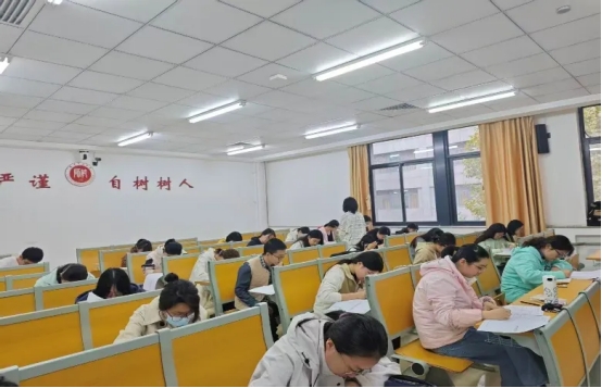 为帮助毕业年级参赛选手进行全真模拟练习,10月16日,我院在劝学楼率先举办了模拟笔试。笔试现场严格按照教师编考试的完整流程进行,使同学们提前感受考场氛围,确保考试的公平公正。笔试题目涵盖教育综合知识和学科专业知识,帮助同学们检验学习成果、调整学习规划。