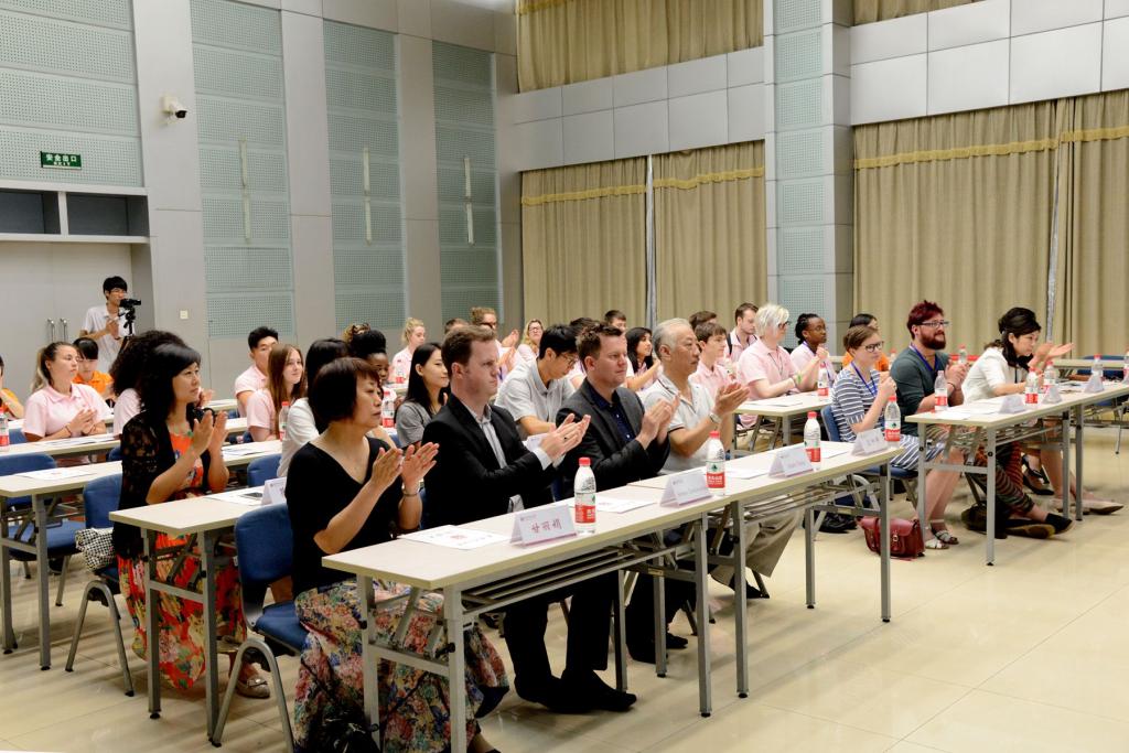 7月18日上午,由国家汉办资助的2017年英国赫尔大学孔子学院夏令营开班典礼在我校办公楼一楼多功能厅举行。我校副校长钟英华、国际交流处处长杨薇、英国赫尔大学孔子学院中方院长刘建梅、赫尔大学孔子学院英方院长Marina Mozzon-McPherson、bw必威西汉姆联院长赵利民、党委书记郝岚等出席开班典礼并讲话。中英双方授课教师、21位夏令营学生、国际交流处和bw必威西汉姆联相关人员及志愿者参加了典礼。典礼由bw必威西汉姆联副院长魏睿主持。