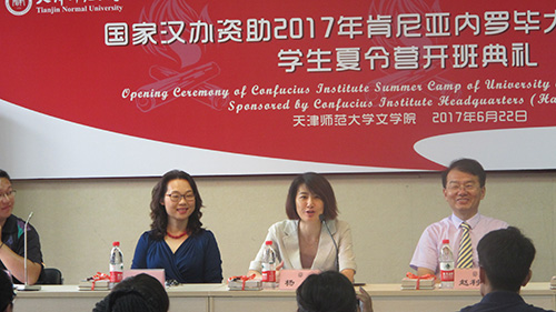 6月22日上午,由国家汉办资助、我院承办的肯尼亚内罗毕大学孔子学院暑期夏令营开班典礼在我院报告厅举行。国际交流处杨薇处长,院长赵利民教授,党委书记郝岚教授,夏令营领队袁自立老师以及我院的授课教师、国际交流处教师出席了开班典礼,典礼由我院魏睿副院长主持。