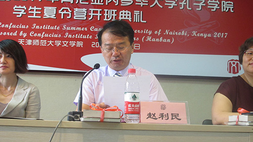接下来,院长赵利民引用《论语》中的:“有朋自远方来,不亦说乎”向内罗毕大学孔子学院的同学和老师们表示了欢迎,并细心向学员们介绍此次夏令营的行程安排,如妙趣横生的汉语课程,丰富多彩的中国文化体验以及名胜古迹游览。赵利民院长还对中肯两国的文化交流以及中肯两国的友谊表达了深切的展望与祝愿。