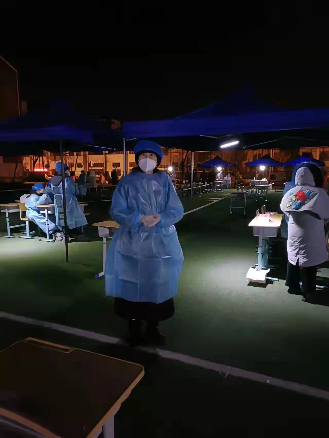 凌晨起,bw必威西汉姆联的志愿者便起身服务。跨文化与世界文学研究院院长郝岚老师和比较文学与世界文学教研室甄蕾老师因同住一个社区,便结伴一起投入志愿服务工作,同时也联动师大其他学院的教师一起开展工作。她们身着一次性防护服,承担了引导、登记的工作,从天黑到天亮,从未停歇。甄老师也激动的在朋友圈中写道“民盟盟员也在抗疫一线向前冲”。