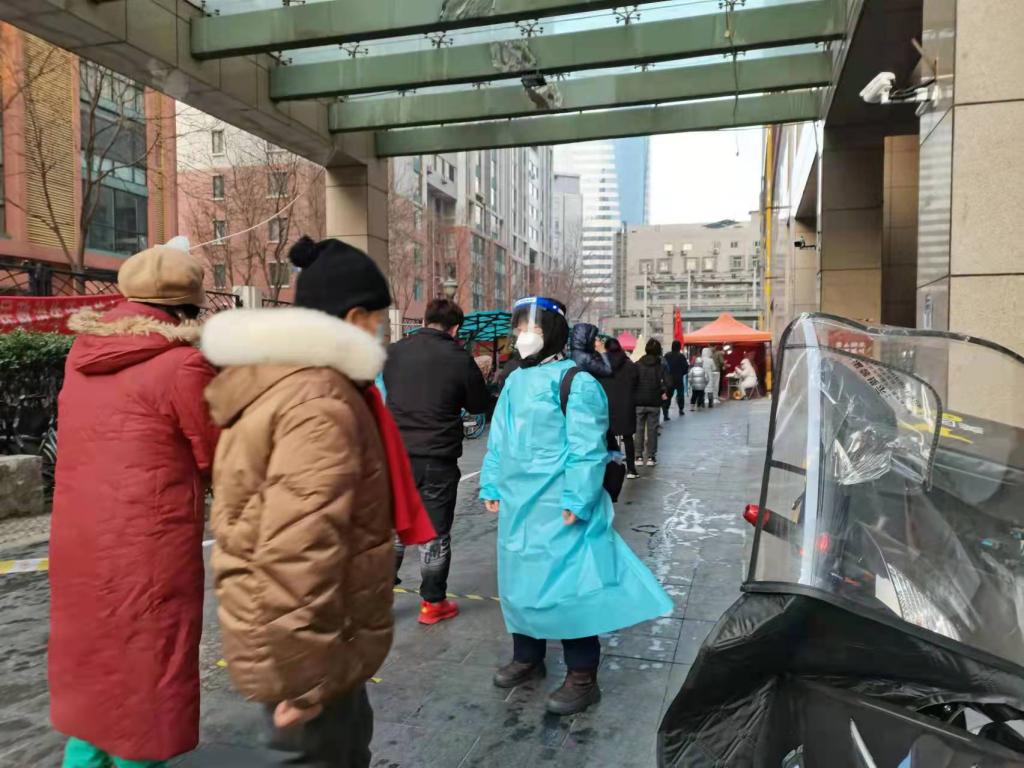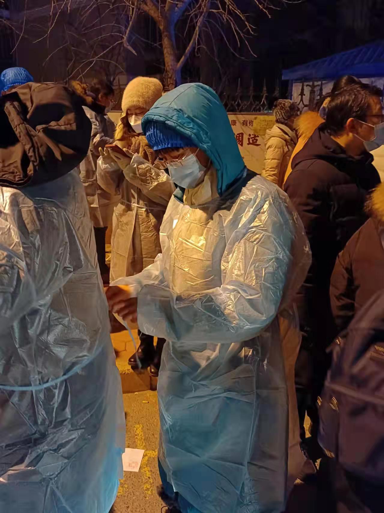 “这个小区十分需要人手,虽然有些远,但也没有犹豫打车就去了”,现代汉语教研室李洁老师到达居委会安排的指定社区后开始组织扫码登记,登记不能间断,到深夜时寒风凛冽,李老师手已经冻僵,但一想到居民和志愿者能早些回家休息,李老师搓了搓手继续干了起来。清晨五时,外国文学教研室王世欣老师按照社区要求打车到达指定点位后,迅速组织前来进行核酸检测的居民排队等待,在排队的过程中,王老师只要看到队伍一松散,就马上维持队伍秩序,“我之前就和社区报到了,随时待命,能在抗议中尽一份力,我感到很光荣!”