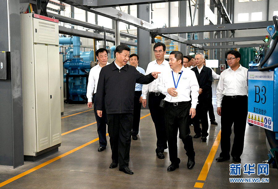 5月20日至22日,中共中央总书记、国家主席、中央军委主席习近平在江西考察,主持召开推动中部地区崛起工作座谈会并发表重要讲话。这是习近平在江西金力永磁科技股份有限公司考察,了解赣州稀土产业发展情况。 新华社记者 鞠鹏 摄