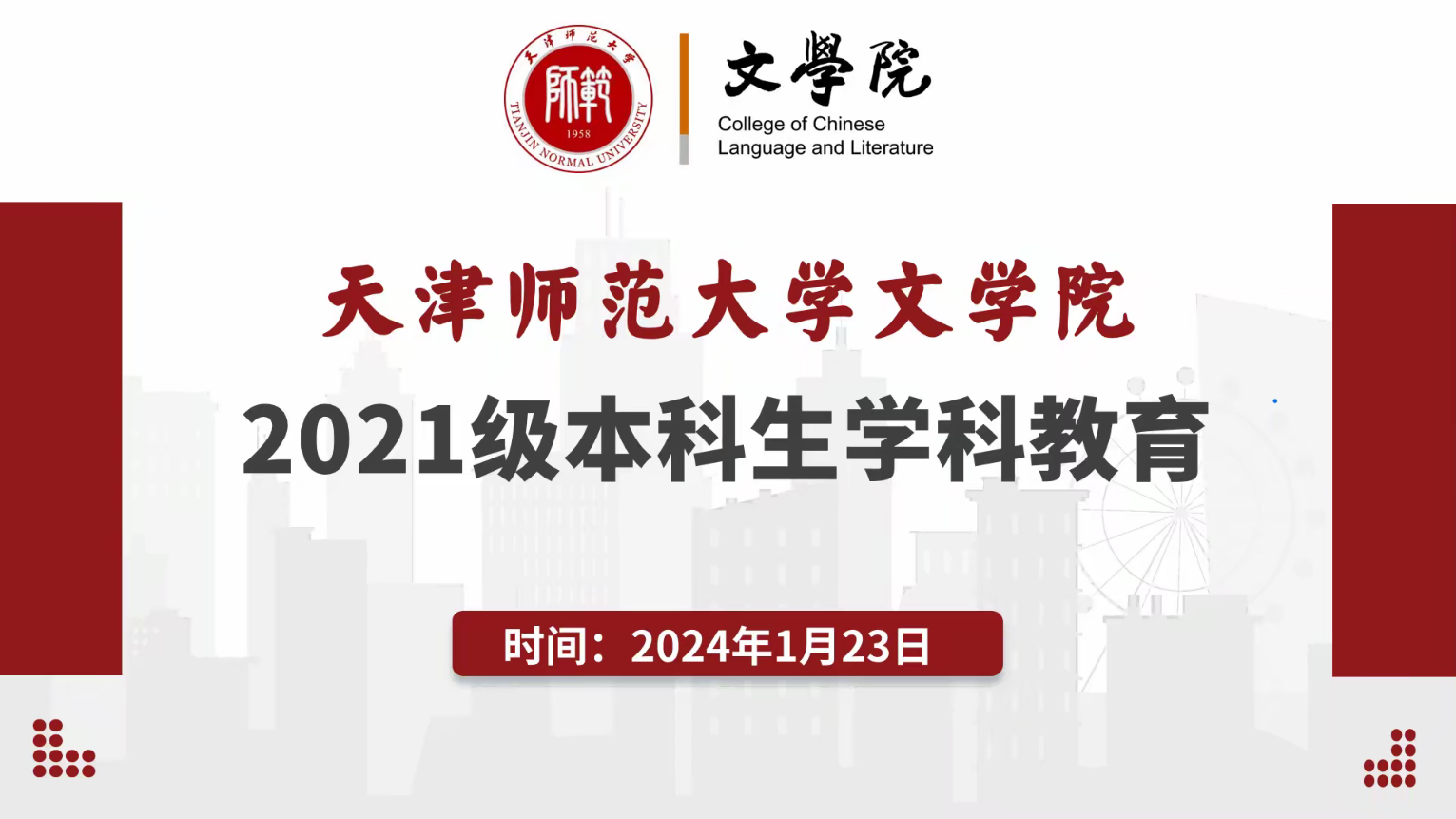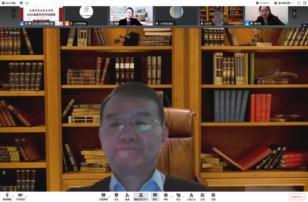 会议伊始,中国语言文学天津市重点(一级)学科带头人、文艺学学科带头人、博士生导师赵利民教授宏观介绍了中国语言文学一级学科、11个二级学科的基本情况和学院学科建设成果,鼓励2021级本科生作为高年级学生要主动了解学科情况,提前着手做好学业规划,拒绝“躺平”,科学合理利用假期为今后进一步的学习深造打下坚实基础。