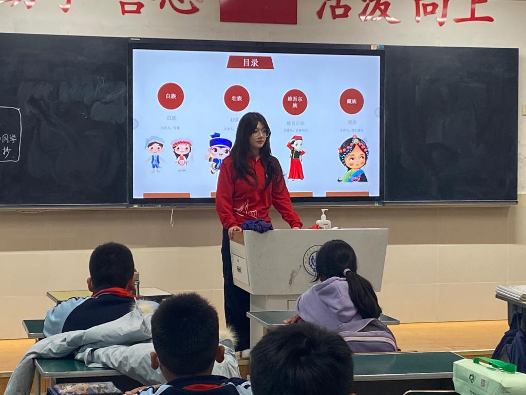 为铸牢中华民族共同体意识,使各民族团结奋斗的思想深入人心,11月30日下午,bw必威西汉姆联2201班的“星火燎原”志愿服务队来到天津师范第三附属小学,以课后服务的形式开展了一堂别开生面的少数民族文化课程讲解。志愿者们通过展示、互动等多种方式,带领孩子们一起探索藏族、佤族、白族、壮族、维吾尔族等少数民族文化的深沉魅力。