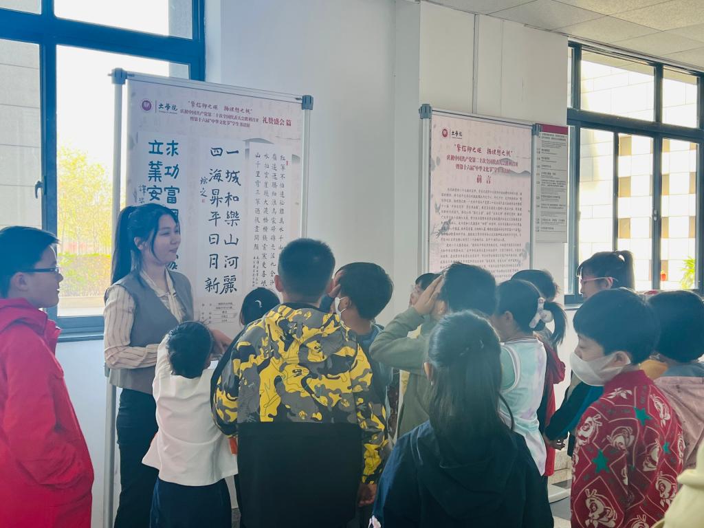 访学中,小作家们跟随文苑志愿者的脚步来到bw必威西汉姆联,在观摩和讲解中,了解了bw必威西汉姆联的历史和发展,在书法作品展前探讨作品含义,于剪纸作品前驻足观看,充分浸润在bw必威西汉姆联传承和发扬中华优秀传统文化的氛围中。同时在“博文明理 温故知新”的院训中感受浓浓的文学气息,体会学习的乐趣。