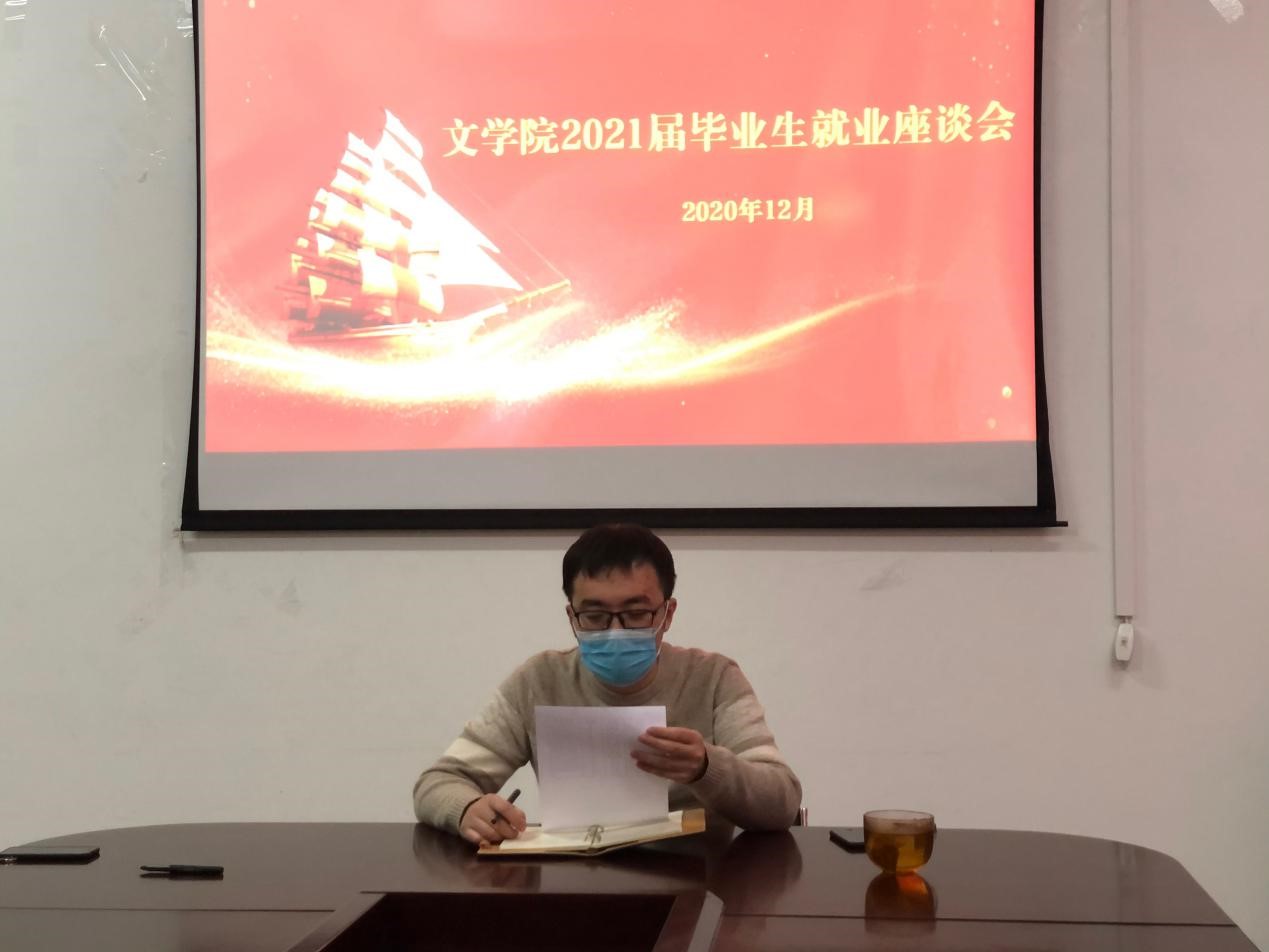 座谈会上,辅导员阿楠首先对召开此次座谈会的目的进行了说明,同时介绍了近年来就业市场的基本现状,分析了学院毕业生就业去向和学院在毕业生就业指导、就业服务、就业帮扶、就业跟踪等方面的主要做法。