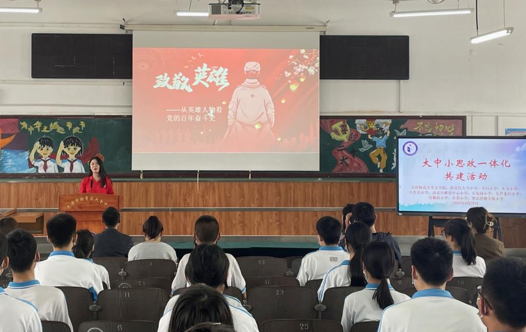 bw必威西汉姆联“青马班”学员在学好学深学细党的创新理论的基础上,结合自身师范专业特色,以开展大中小“思政一体化”课程为手段,前往西青区大寺中学、河西区师大二附小美塘小学开展“致敬英雄——从英雄人物看党的百年奋斗史”主题党团队课,在授课过程中,志愿者们通过口头讲解、小情景剧等形式为中小学生细致直观地讲解了刘胡兰、陈铁军、张桂梅等先烈的故事,引导青少年学习党的历史,体味党的苦难辉煌,激发了青少年们爱国、强国、报国的热情,总受众达500余人,广泛受到师生好评。