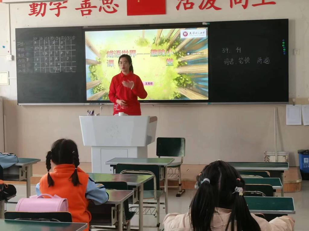 “成语世界——趣味小课堂”课程组,以“认识成语,了解成语”为基本目标,围绕“成语典故背后的历史故事”内容展开教学,将游戏、互动融入课堂,在带领学生了解传统文化魅力的同时,培养其表达能力与思辨能力,鼓励更多同学接触成语,了解成语,运用成语。在寓教于乐的同时,提升学生的人文素养。