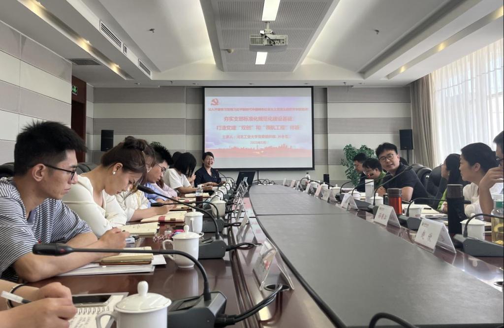 孙冬雪从夯实支部标准化规范化建设,解读全国党建“对标争先”、“双创”和天津市党建“领航工程”政策要求,结合实例分析全国样板支部“一融双高”先进典型做法等方面进行交流分享。在支部标准化规范化建设方面,细致梳理了党支部组织建设、党员教育、党员管理和党内激励机制等相关工作要求。在交流中,孙冬雪强调“抓落实”在党支部建设中的重要性,同时结合品牌支部工作案例,展示了党建“双创”建设单位积极推动党建工作与事业发展深度融合的经验,为学院党支部建设提供了以高质量党建引领高质量发展的优秀范例。